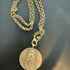 Doublesided GP Blessed Mary & St. Anthony w/ single cut diamond pendant on GP chain w/ diamond lobster claw clasp (24" + 1.75") #9418