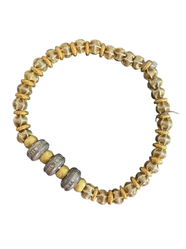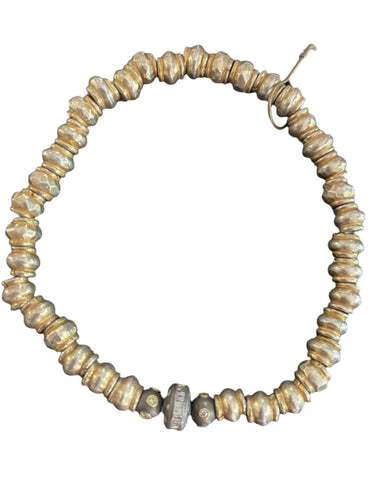 Antiqued Hill Tribe Sterling Silver Beads W/ Matte Sterling & 18K Gold Brilliant Diamond & Baguette Diamond Beads Bracelet #4247