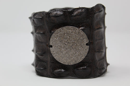 Black Crocodile Cuff w/ Diamond Disc #2588