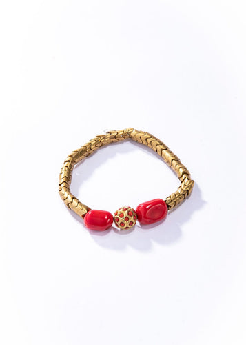 Natural Coral, Coral & 22K over Silver Bead w/ Brass Snake Chain Bracelet #4228