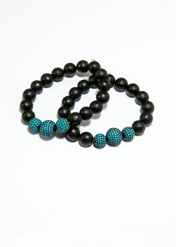 Faceted Black Onyx Bracelet w/ Turquoise Beads #6135