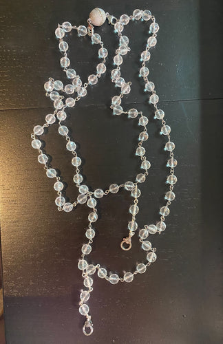 Faceted Quartz Crystal Rosary SS Chain & Magnetic Clasp W/ Diamonds & Diamond Lobster Claw Clasps (48”+ Double 2” Tails)