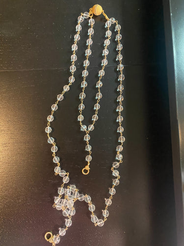 Faceted Quartz Crystal Rosary GP Chain & Magnetic Clasp W/ Diamonds & Diamond Lobster Claw Clasps (48”+ Double 2” Tails)