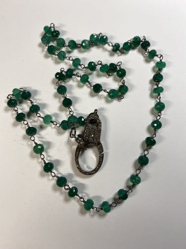 Faceted Green Amethyst Rosary Chain & Diamond Lobster Claw Clasp 26" #7612