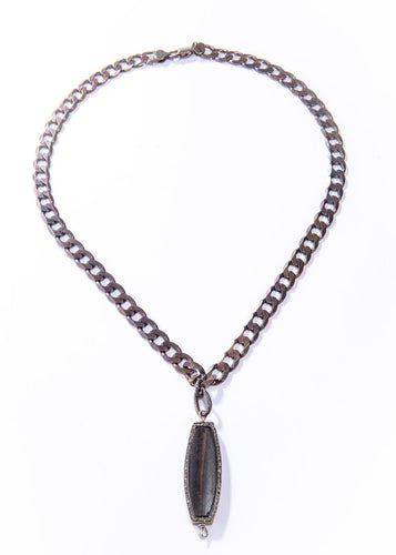 Oxidized Sterling Curb Chain w/ Wooden Diamond Pendant (22"+ 2") #4505