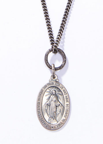 Sterling Blessed Mary Pendant w/ Oxidized Sterling Curb Chain & Diamond Clasp (30"+2") #4516