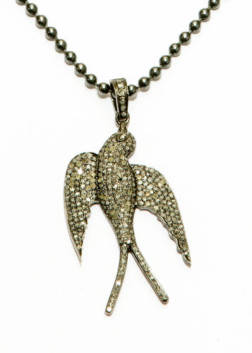 Sterling & Pave Diamond Dove Pendant on Blackened Sterling Ball Chain (16"+ 2") #6070