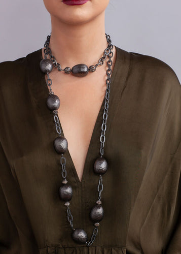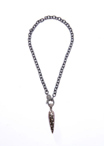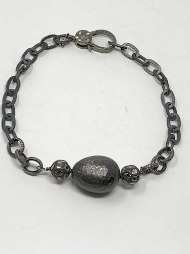 Titanium Plated Sterling w/ Rose Cut Diamond & Diamond Link Chain w/ Hand Hammered Rhodium Plate Bead & Chain Choker #9158