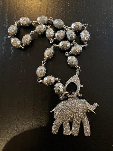 Large Pave Diamond Elephant Pendant w/ Ruby eyes (8.24C) (2") #9386