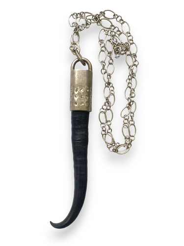 Naturally Shed Springbach Tusk capped in Sterling & Diamond Slices Pendant & Diamond Toggle on Acid Wash Sterling Chain (32"+8") #9041