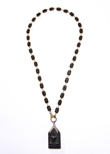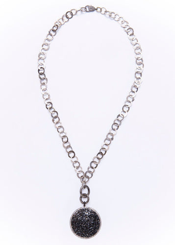 Black Diamond & Pave Pendant w/ Moroccan Vintage Sterling Link Chain & Diamond Oval Clasps (24"+3") #9248