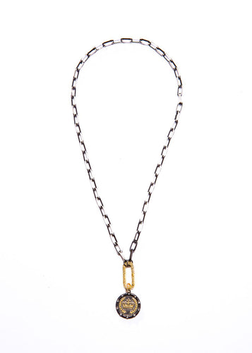 Rhodium Plated Sterling, Vermeil Gold & Diamond Royal Pendant w/ Vermeil Gold Link Clasp & Rhodium Sterling Chain (18"+ 1.75") #9441