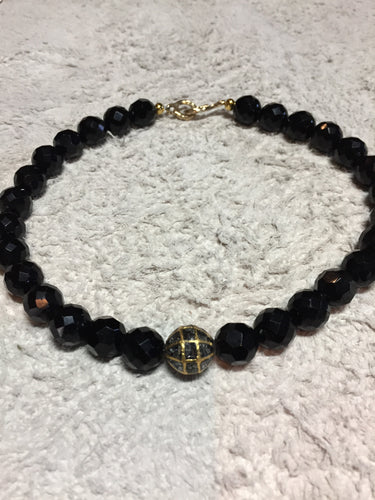 Faceted Black Vintage Czech Crystal w/ Black Raw Diamond Bead 14" #1787