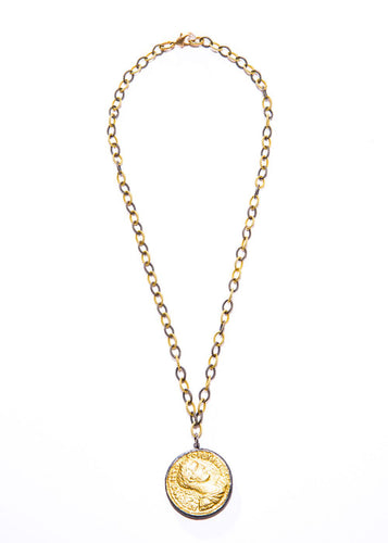 Oxidized Sterling & 22K Gold Plate Pendant & Chain (20"+1.5") #4509