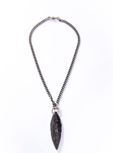 Black Quartz Nugget w/ Diamond Clasp & Blackened Sterling Link Chain 24"+1" #4511