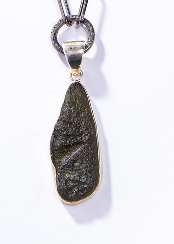Moldavite Sterling Pendant w/ Blackened Sterling Link Chain w/ Round Dimond Clasp (22"+2.25") #4513