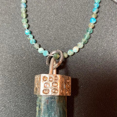 Blue Tourmaline wrapped in Sterling Silver w/ Conflict free Raw Diamond (2") #9473